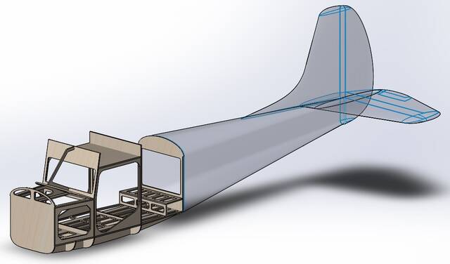 И, как-то нпока не могу понять узел крепления хвостовой балки фюзеляжа, только клеевой шов по периметру? Как центральная часть фюзеляжа связана с хвостовой?