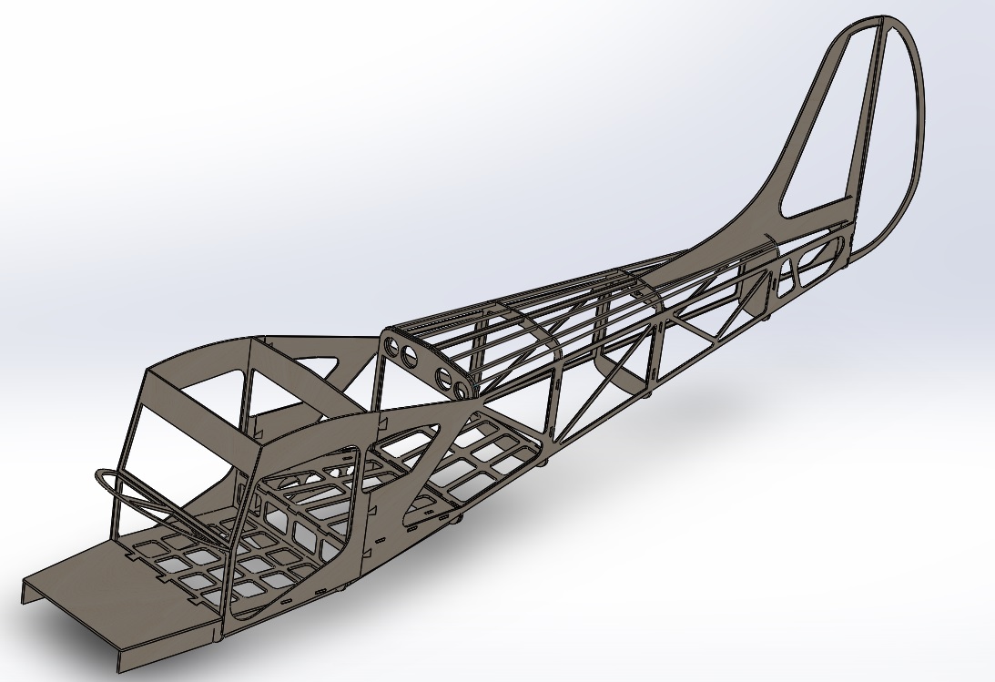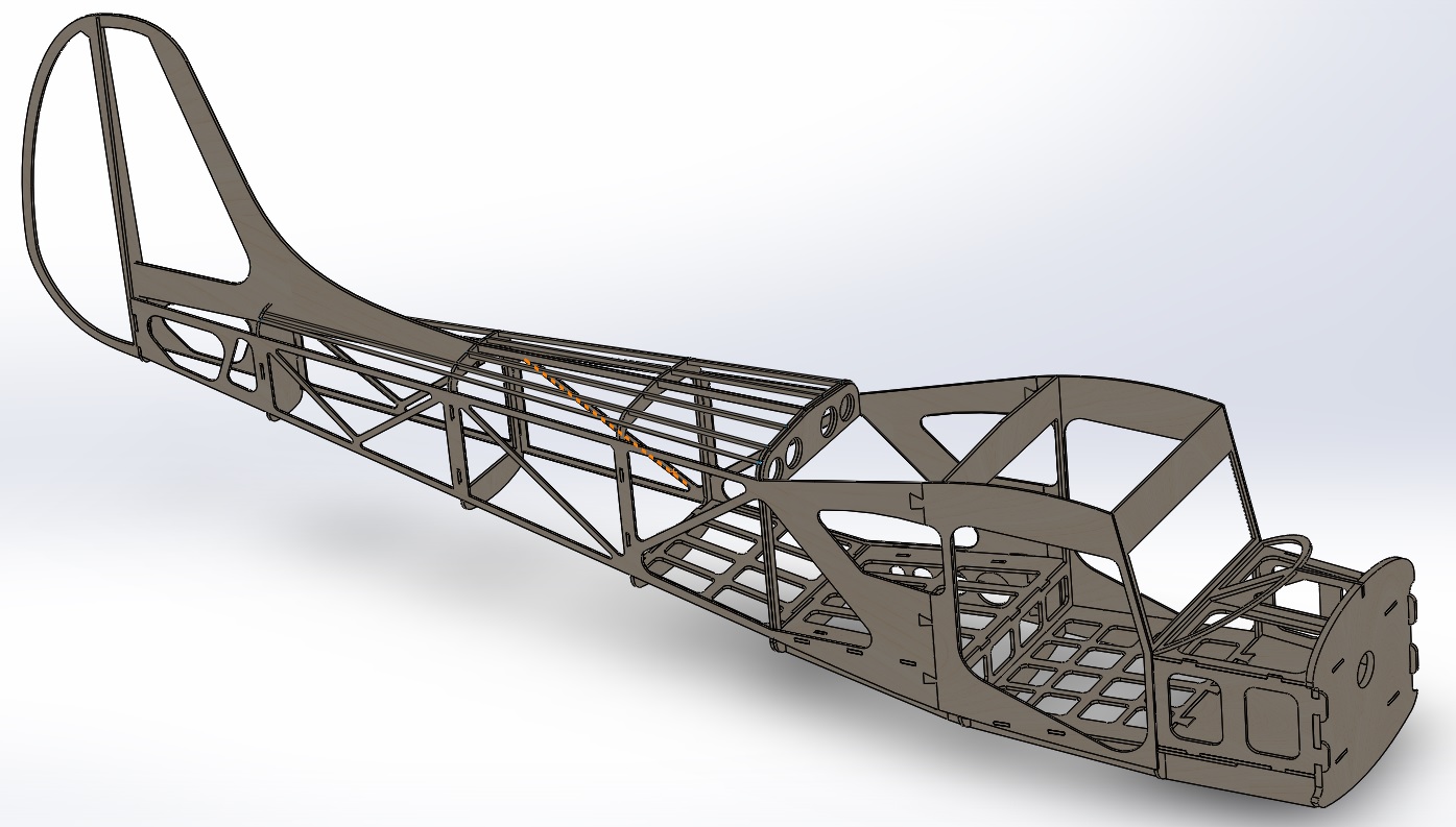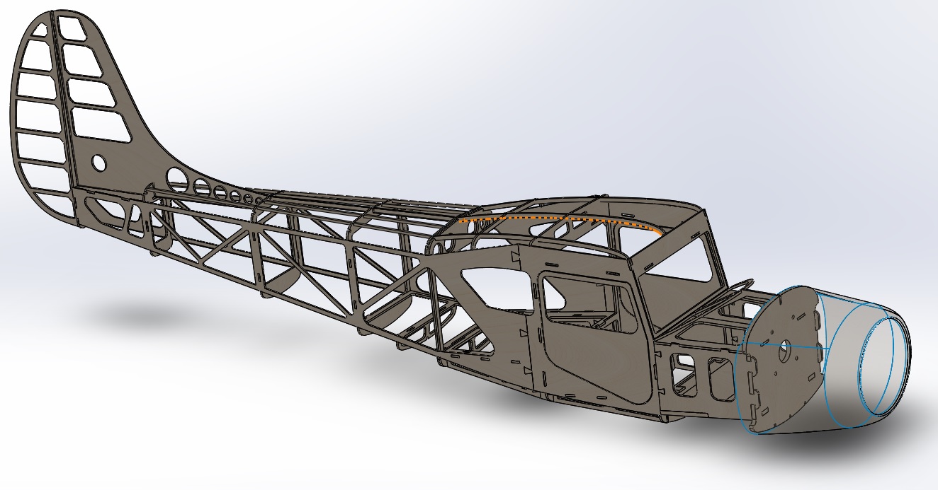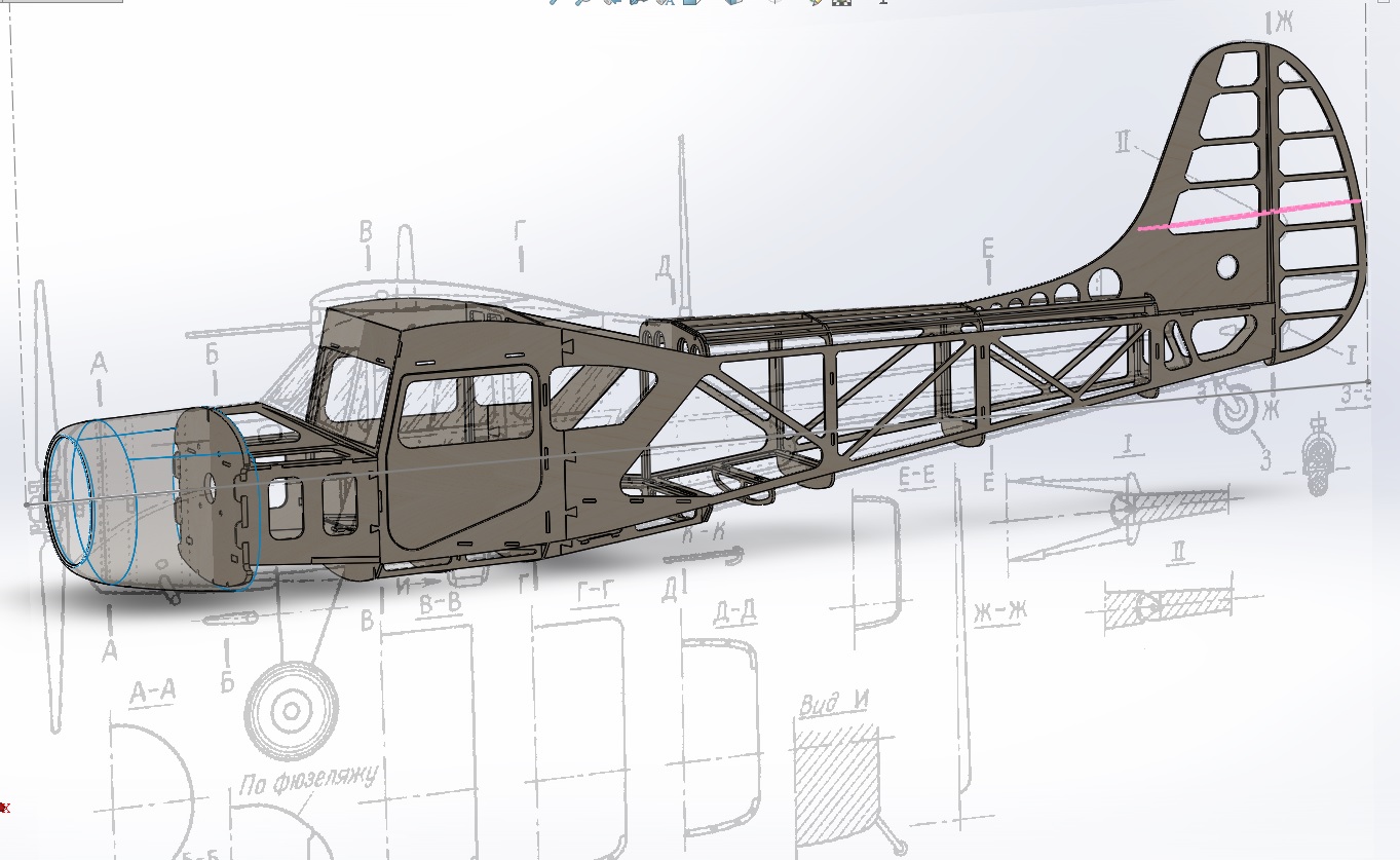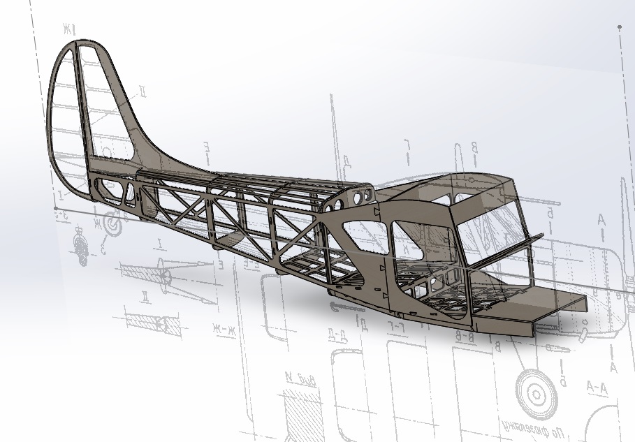 Фюзеляж почти готов к лазерной нарезке для натурного макетирования, чтобы скомпоновать двигатель, шасси, радиооборудование.