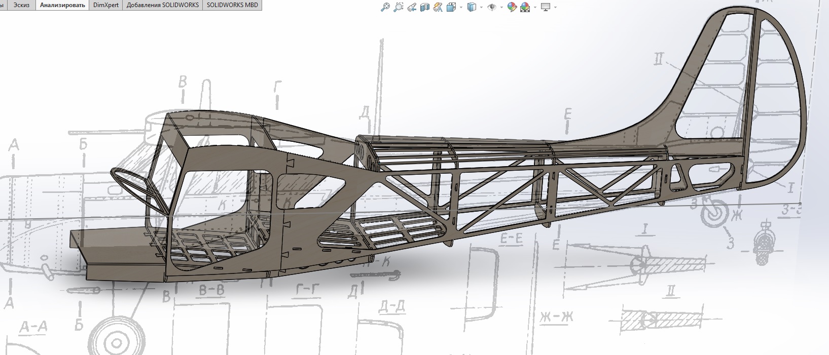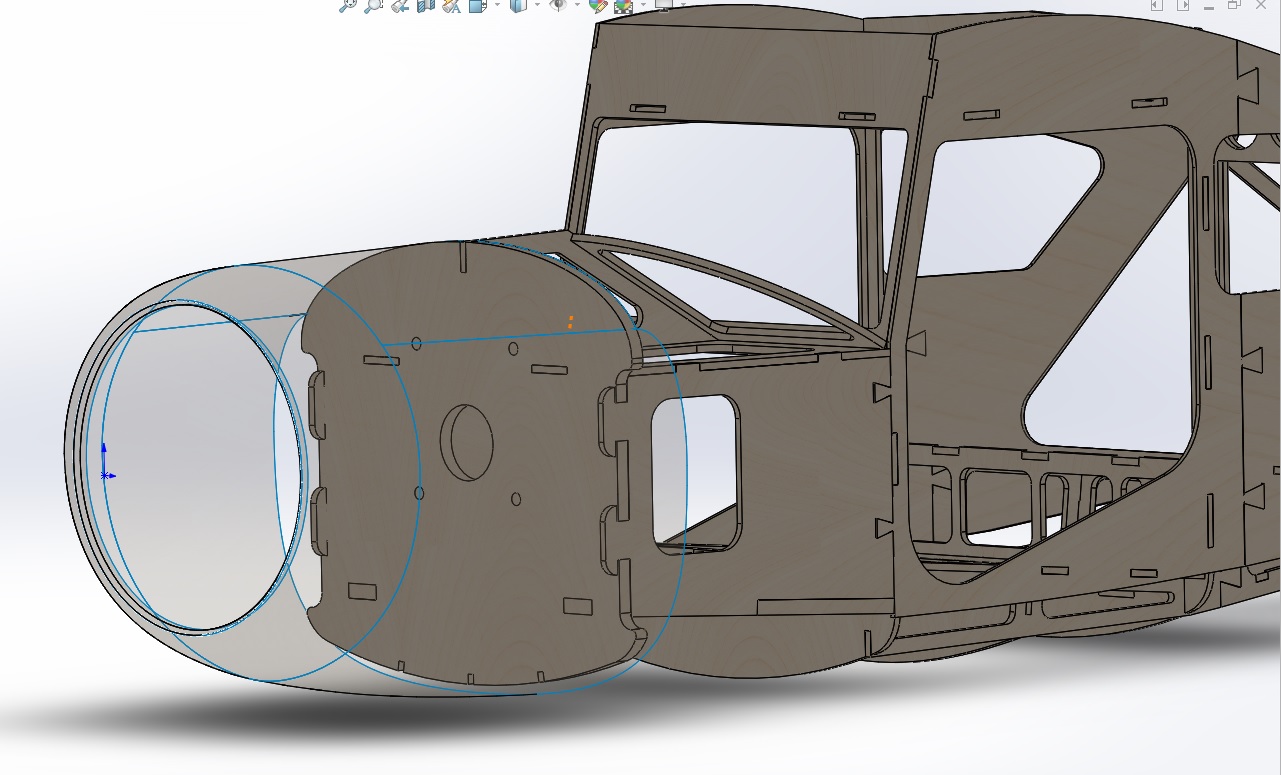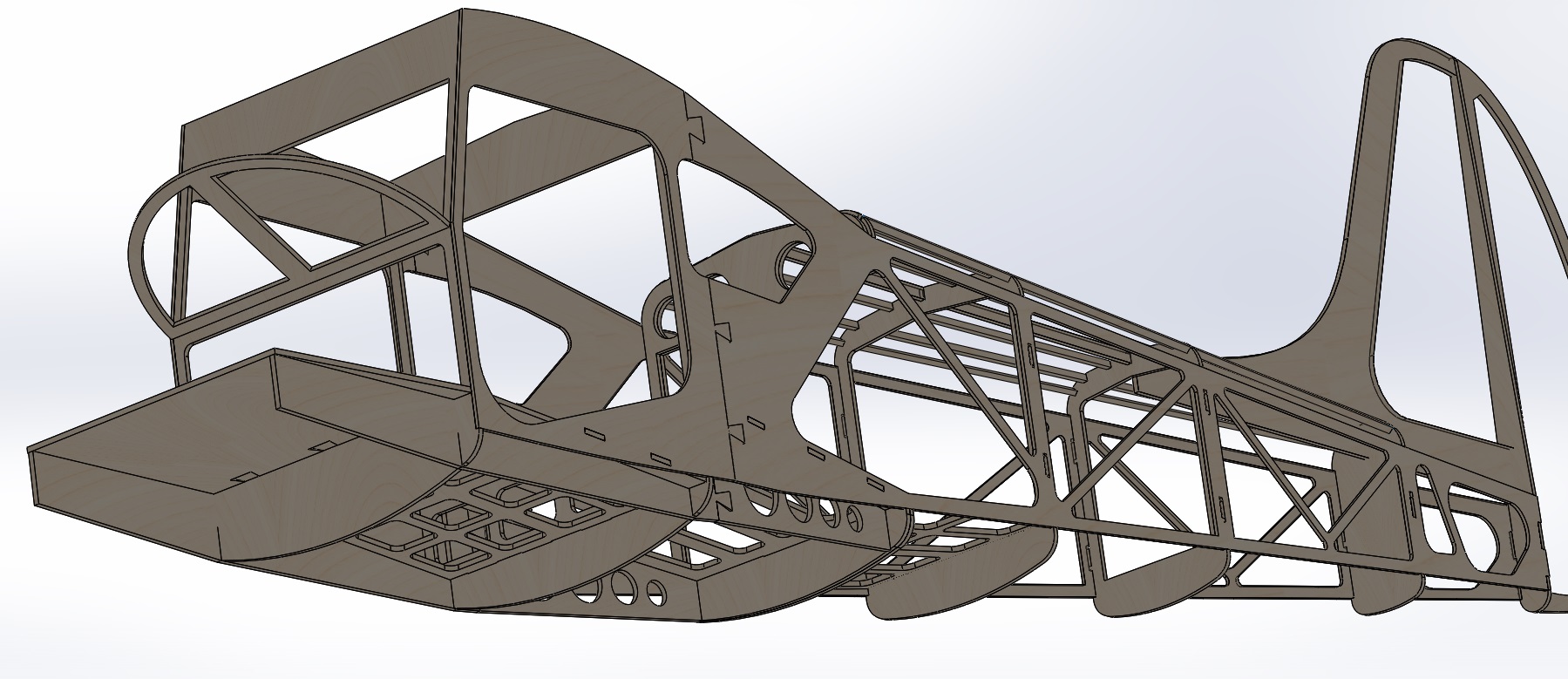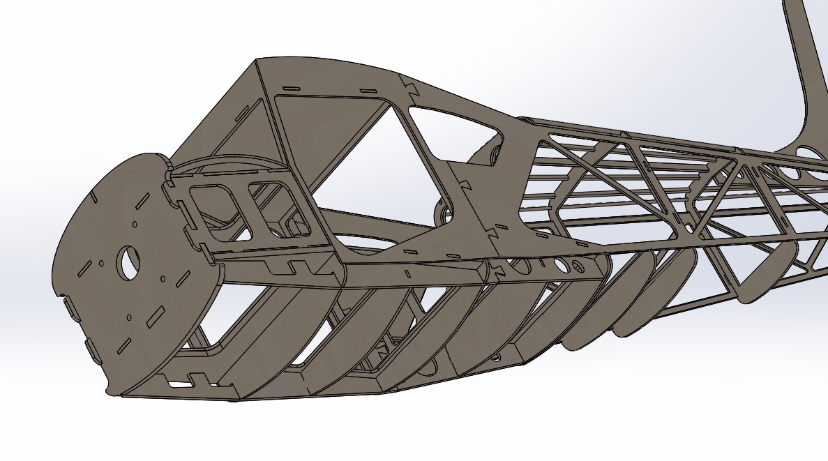 Фюзеляж почти готов к лазерной нарезке для натурного макетирования, чтобы скомпоновать двигатель, шасси, радиооборудование.