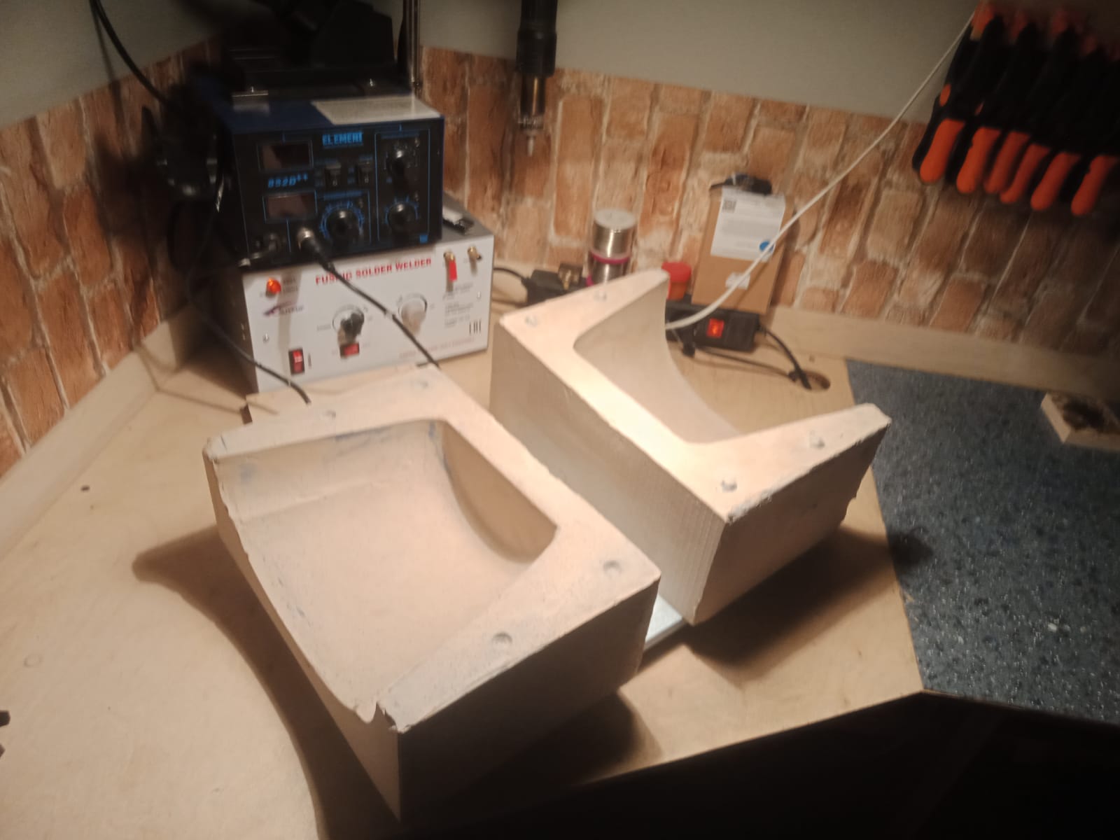 Да, кстати по технологии в общем, при заливке 2-х половин матрицы (из гипса), для их разделения используется "доска" , вокруг которой строится короб для заливки, как невелируется толщина этой "доски" после заливки первой половины для заливки второй?