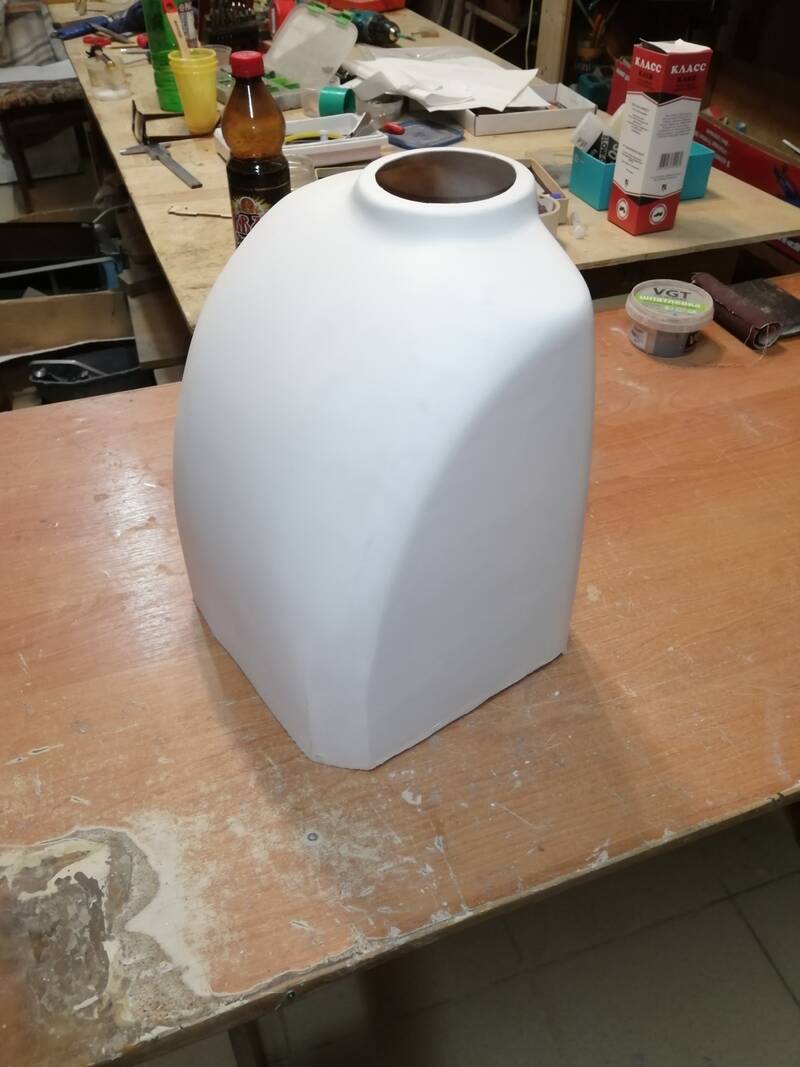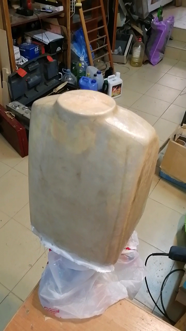 Формируется болван, покрывается износостойким составом типа лака. Далее кладется разделитель и укладывается стекловолокно.