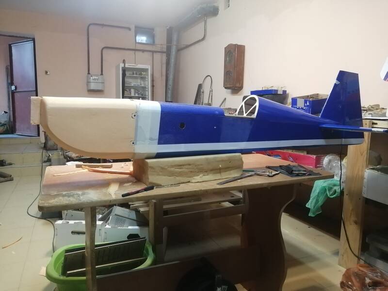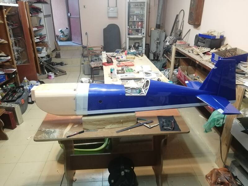 Сегодня основное время ушло на покраску капота. Красил баллончиком, белая краска попалась с очень плохим распылителем. При нанесении краски она плевалась крупными каплями. В итоге потеки и толсты слой краски. Пришлось переделывать 2 раза. Снимал краску, зачищал и по новой красил. Свою роль сыграло стремление побыстрее закончить покраску. В итоге на капоте местами видны вмятины и провалы от работы ножом и тп. Переделывать не стал. Для первых полетов пойдет, а там и балван подработаем и новый капот сделаем