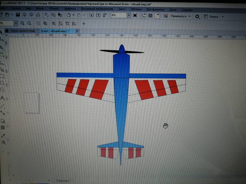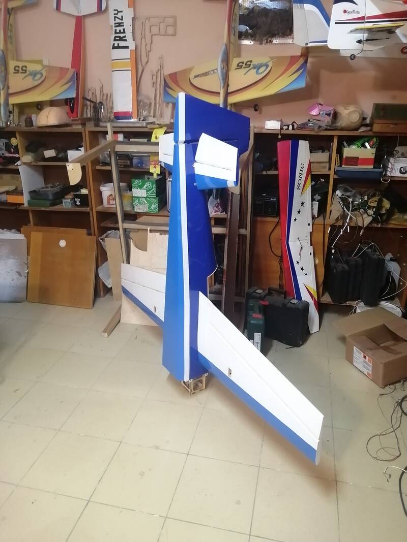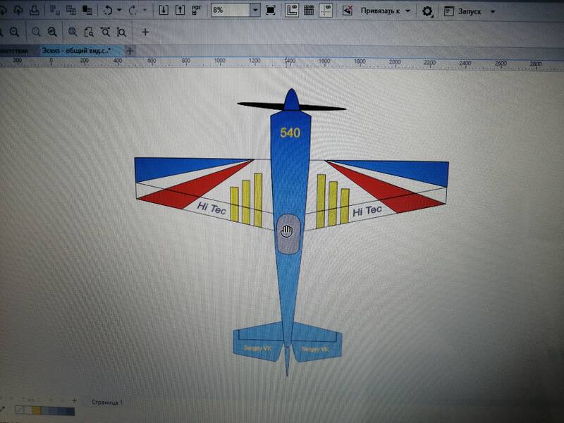 Размах самолета 185см. Полетный вес планируется в пределах 4.7 - 5кг.