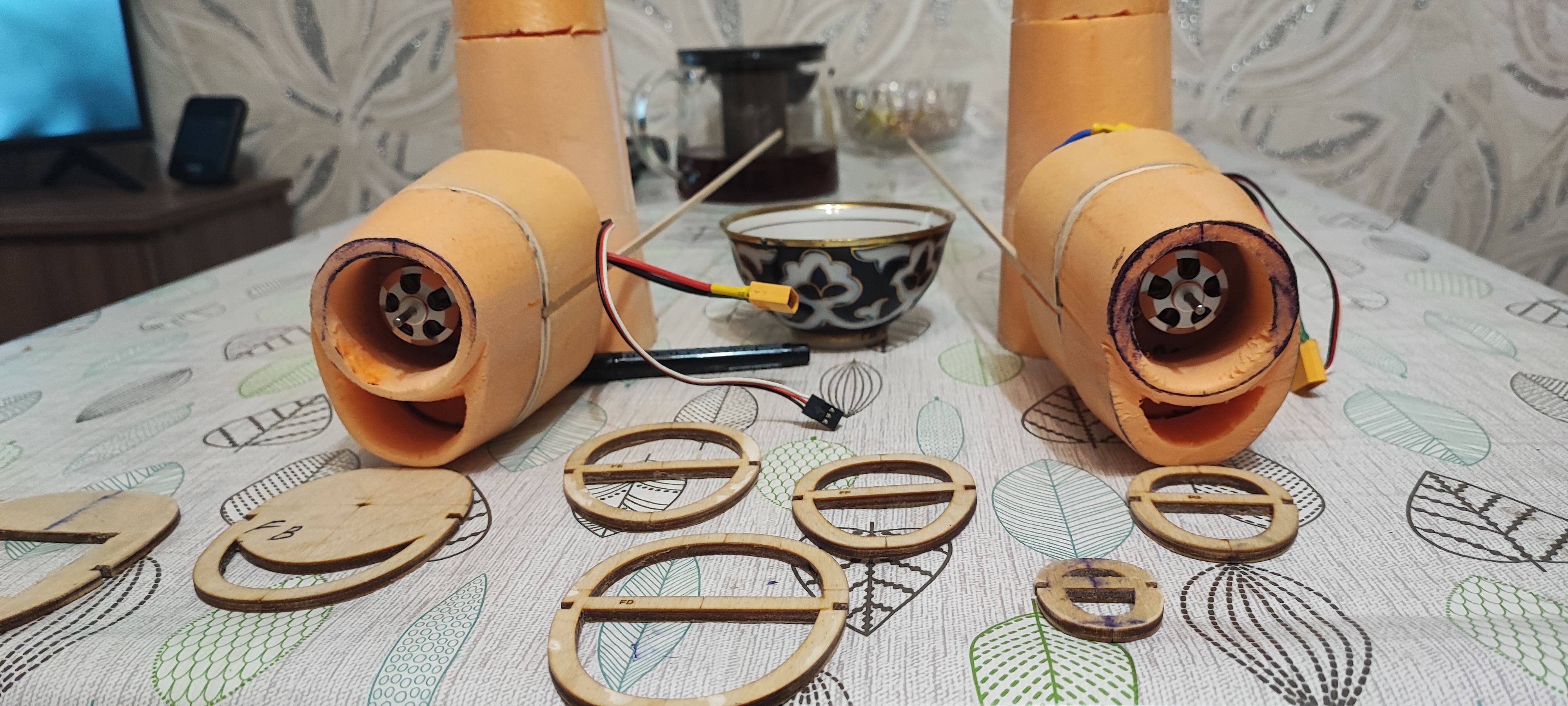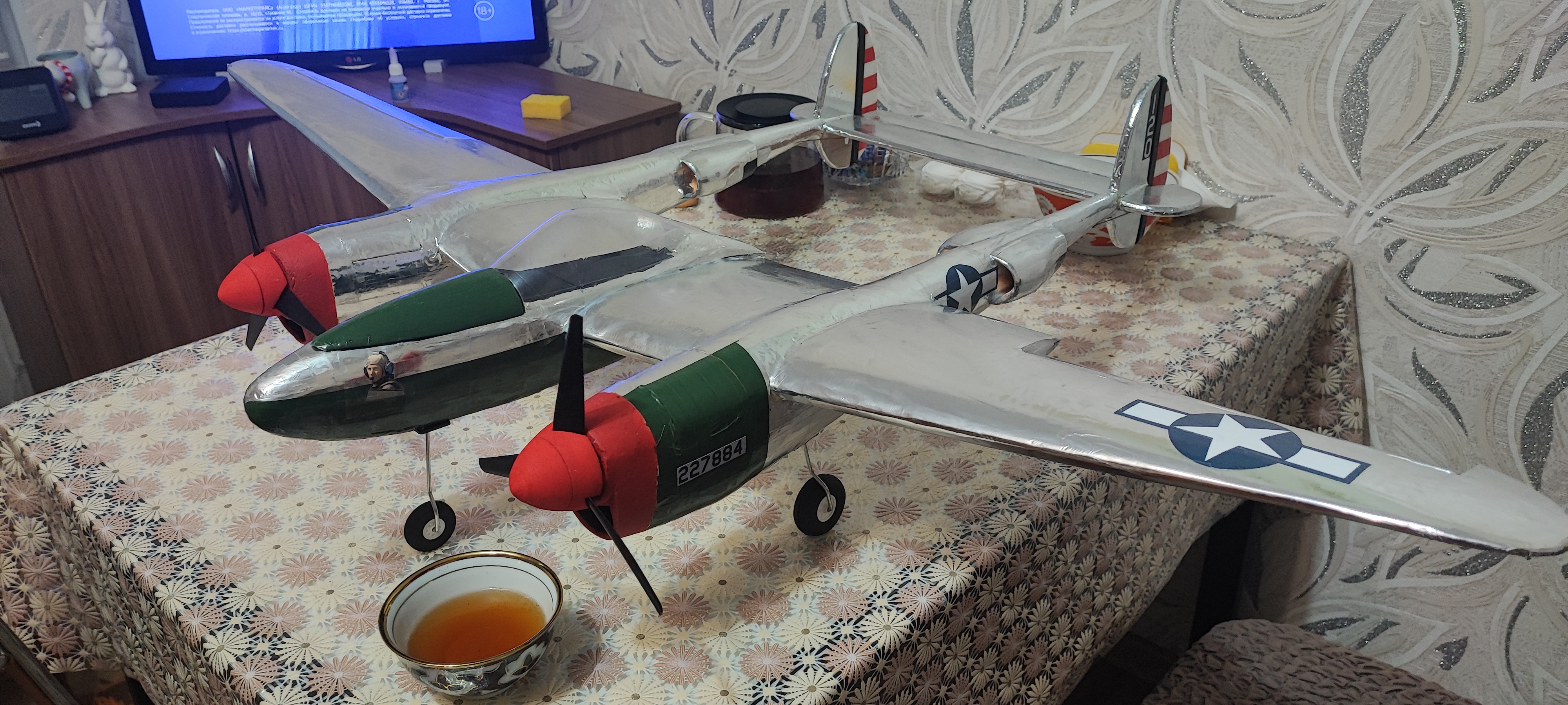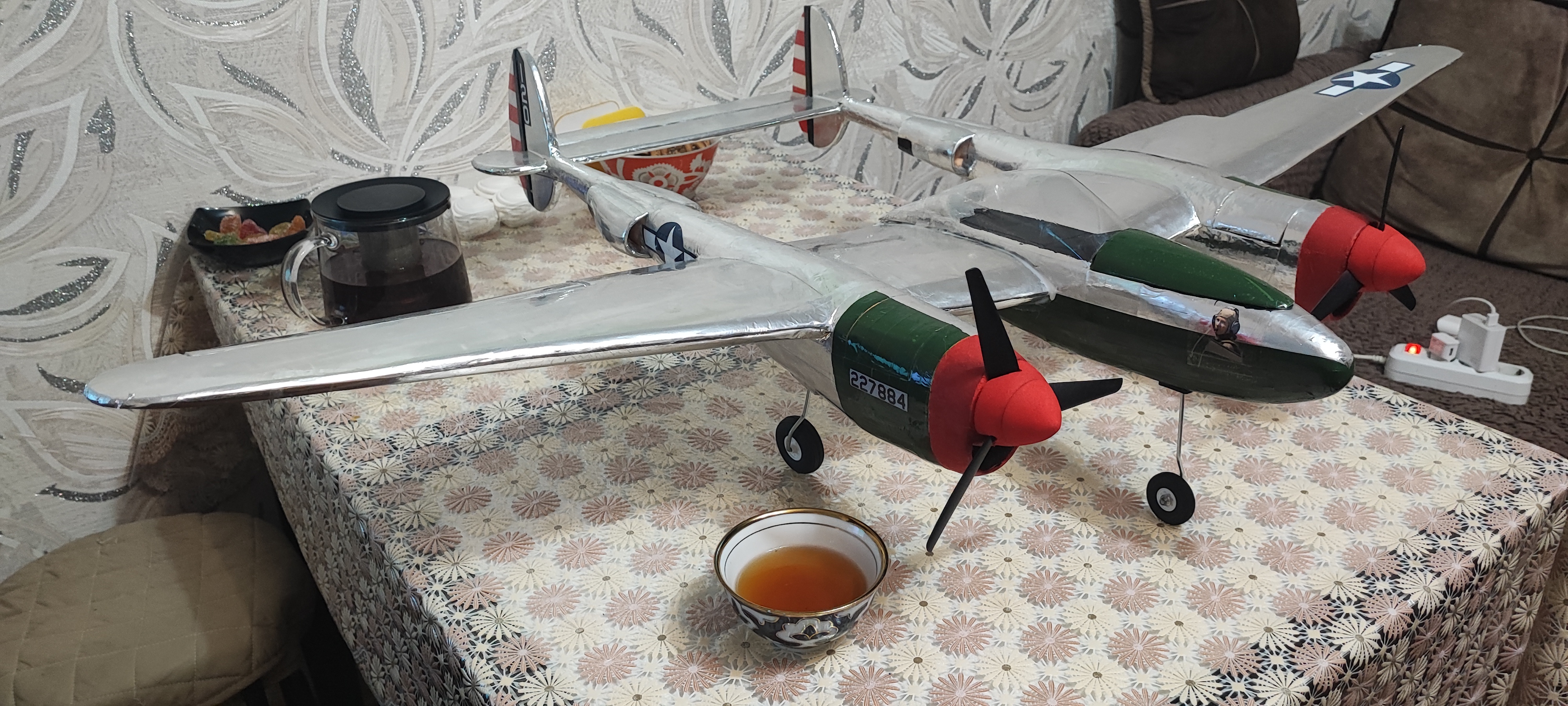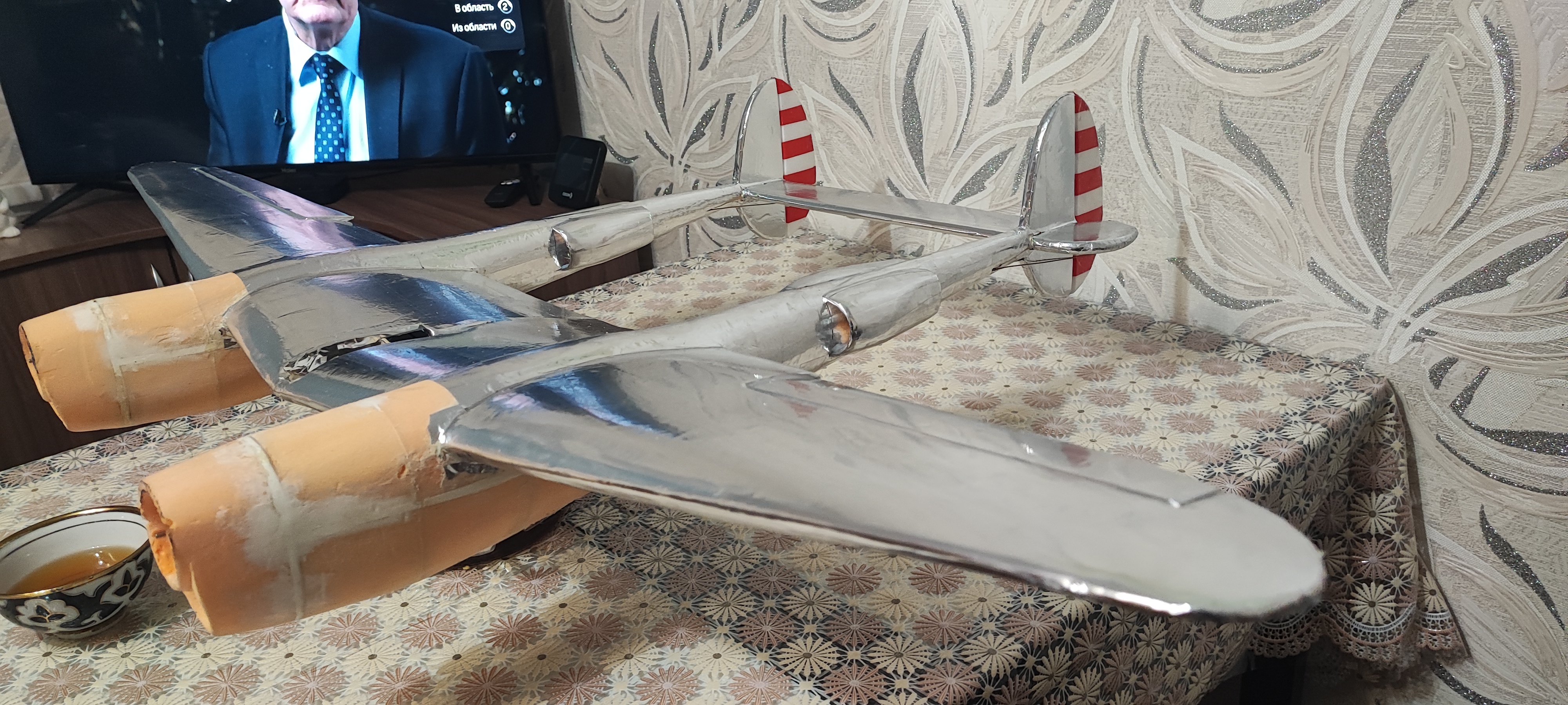 Данная модель, собиралась из пеноплекса по бутербродной технологии. Размах крыла 1300мм, двигатели 2212/1200 kv. АКБ 2200mA шасси убираются