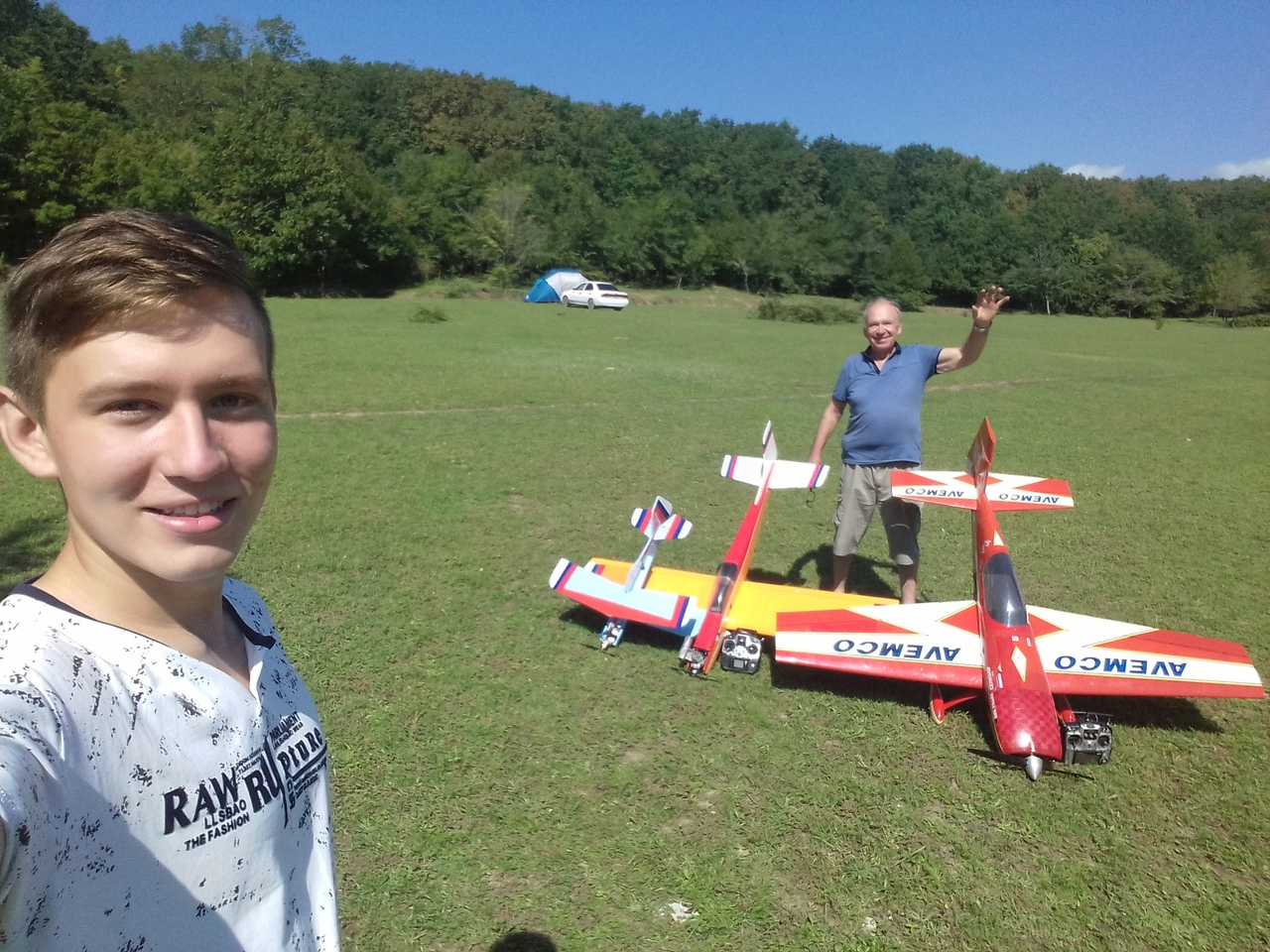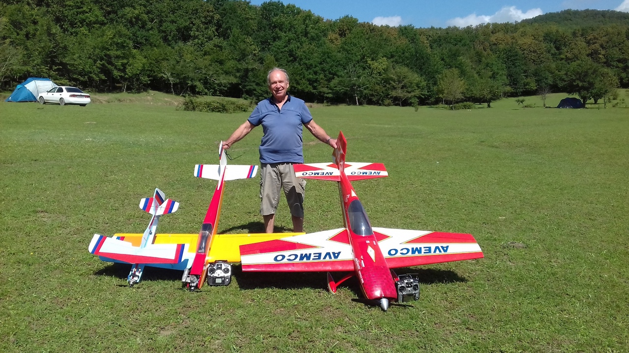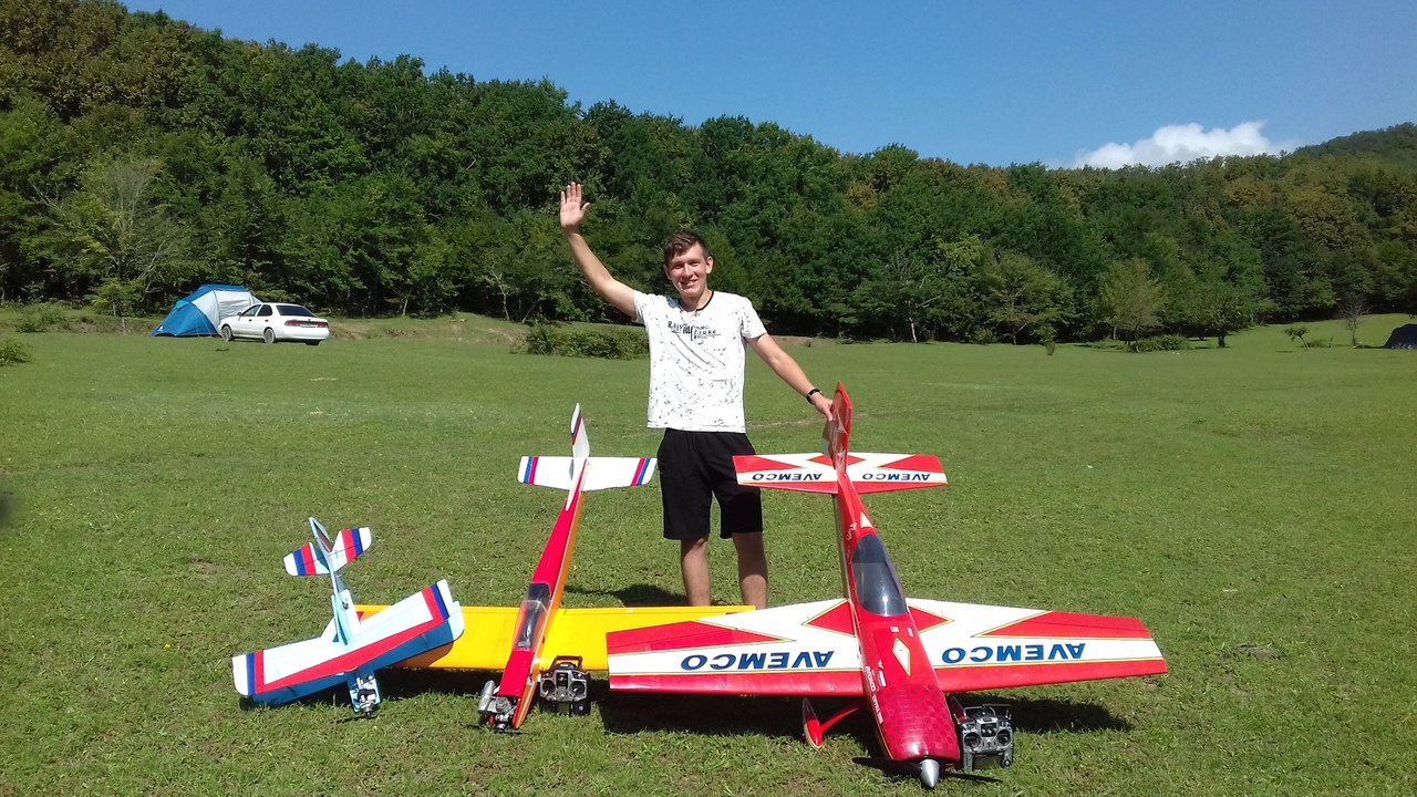 Это Паша-лучший пилот испытатель Темрюкского аэродрома.Готов облётывать все типы летательных аппаратов. Единственный пилот летавший на восстановленной копии ЛА 9 Бор Бор и признавший её не пригодной для дальнейшей эксплуатации.Серьёзную лётную практику получил в Сызрани обучаясь в лётном училище. летая с флагом России в условиях ограниченного пространства стадиона на модели с ДВС при минусовых температурах. Заходя на посадку проскакивал между 2х тополей высотой 15-20м и садил под аплодисменты офицеров и курсантов к ноге.По-этому у себя в Геленджике чувствует себя комфортно и уверенно в довольно стеснённых условиях. Простор в Темрюке конечно хорошо .но когда там квакают лягушки полёты в условиях солнца.лёгкого ветра. сухой полосы с травой высотой 3-4 см . утренней прохлады в 22 гр это мечта любого моделиста! И мы правда только вдвоём этим насладились!