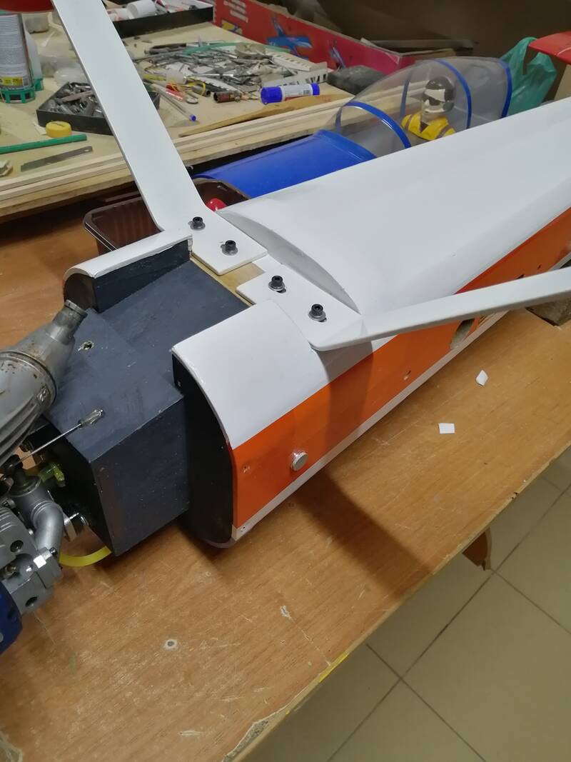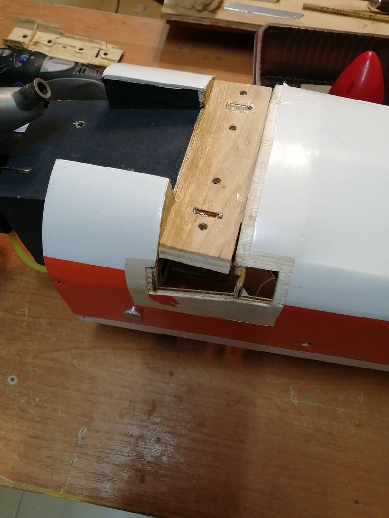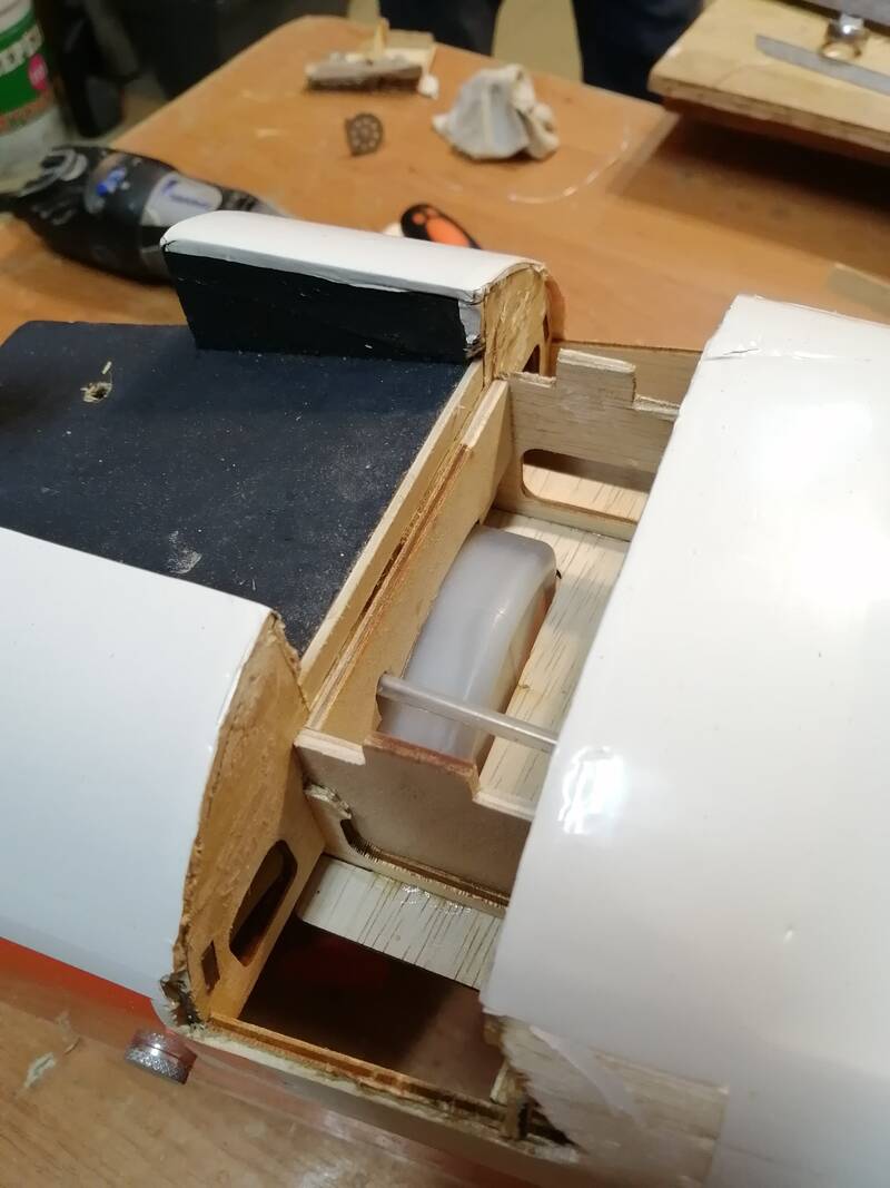 Вклеили новую опору под мотораму. Укрепили передний шпангоут. Вставили новую площадку и с обратной стороны укрепили уголком.