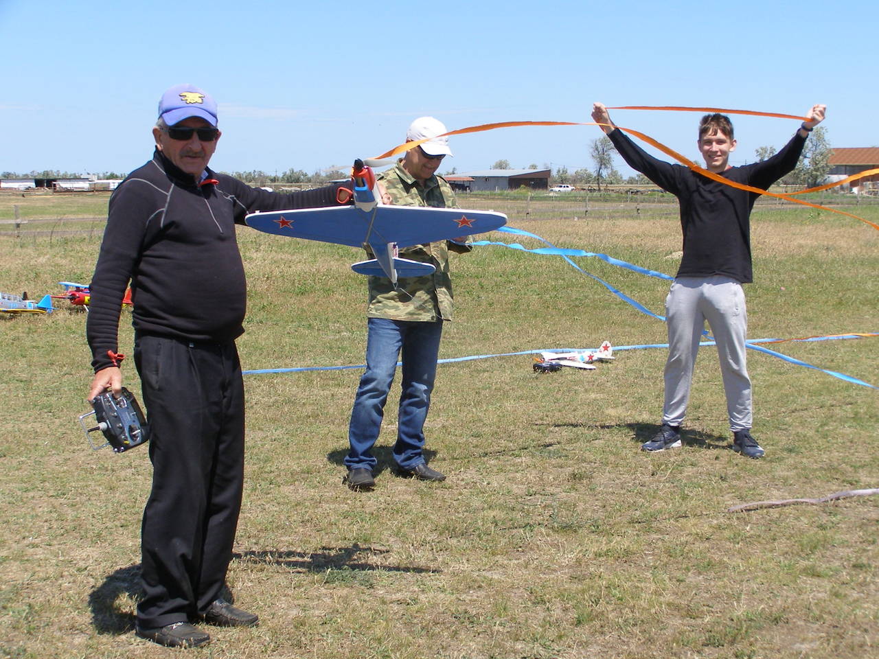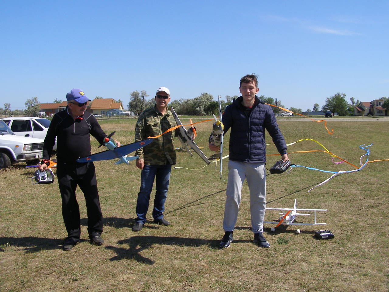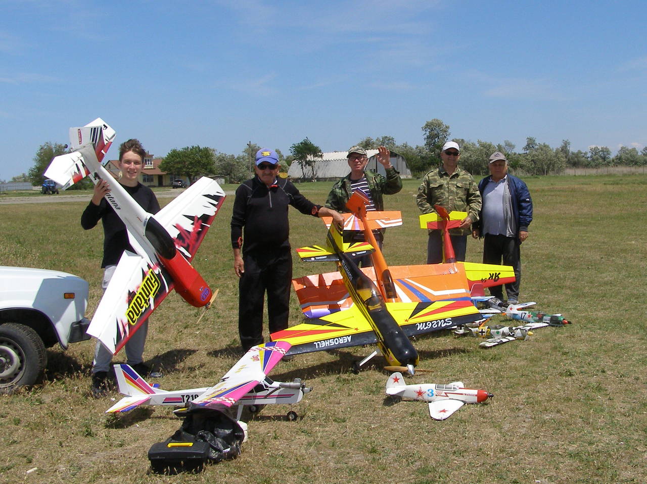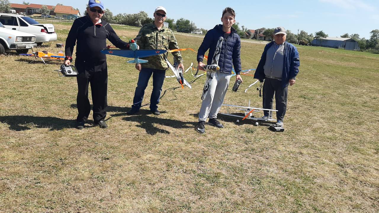 Приветствую всех пилотов! Спешу сообщить новость, Геленджик, Темрюк и Витязево на выходных побывали в гостях у Бориса Борисовича. На первый взгляд показалось, что погода была не летная, однако, после запуска нескольких самолетов выяснилось, что ветер 12м/c не помеха даже для самолетов СОЮЗ 500. Виктор Дмитриевич и, собственно, я ( Пашка) привезли из Геленджика 4 самолета: тренер CANARY, FUNTANA 125G, ЮПИТЕР ЮНИОР и гвоздь программы - FRENZY 100 с двигателем saito 100. Самолет обладает невероятными летными качествами, после капитального ремонта, проведенного Виктором Дмитриевичем, самолет стал весить чуть больше 3кг, напомню, что у данного аппарата отсутствовала "морда" и половина крыла. Не было никаких чертежей. Только закончив ремонт модели, удалось узнать ее название ( получилось случайно). Лучший механик Геленджика постарался, чтобы все параметры самолета сохранились, так оно и получилось. Полетали на бензине, Funtana и СУ 26. Все было в норме. Другие пилоты были с бипланами, а пилот из Витязево, Евгений привез самодельную копия 3D самолета ЯК54, которая летала очень уверенно, несмотря на сильный боковой ветер. Но больше всего меня впечатлили маленькие самолеты, весом 250г, изготовленные по бутылочной технологии СОЮЗ 500. Борис Борисович предоставил мне для боя немецкий самолет FW 190, А сам он летал на ЯКе и Ла5. Еще один местный пилот Александр сражался на биплане, а Евгений решил идти в бой на MUSTANG и МИГ. Скажу честно, если бы так сражались пилоты СССР и Америки, то наше существование было бы под большим вопросом.